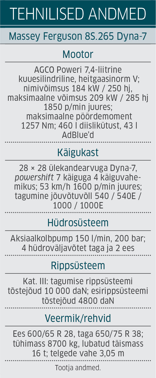 · MF 8S.265 Dyna-7-l on nelja aasta järel kellal 4400 töötundi.