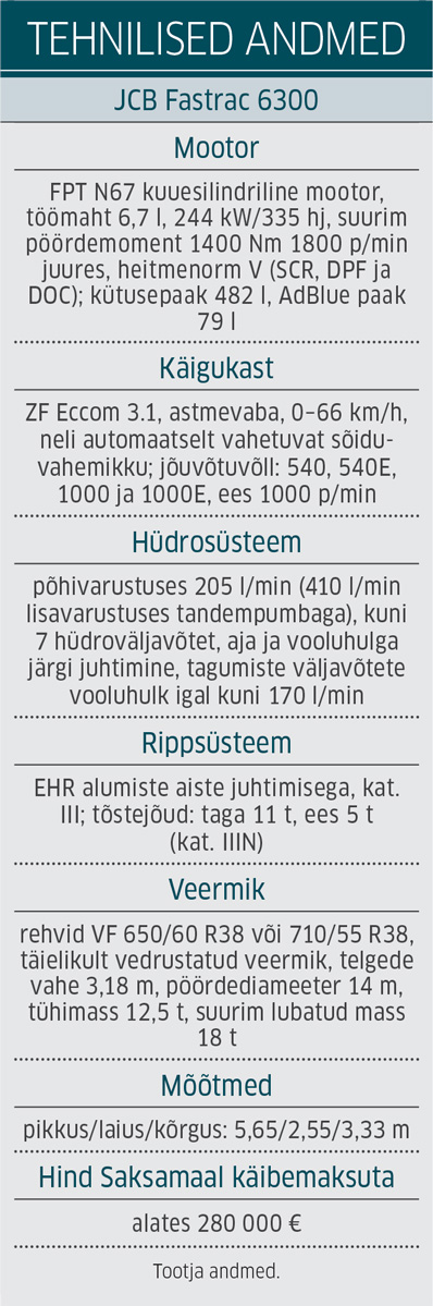 Uus Fastrac täidab JCB valikus 4000. ja 8000. seeria vahelise lünga. Mõnes punktis ületab 6000. seeria isegi suurema mudeli näitajaid. Nii transporditööd kui ka põllutööd on Fastrac 6300-ga lihtsamad, sest tehasest on saadaval nii rehvirõhu reguleerimissüsteem kui ka 1,75 m kõrgused rattad.