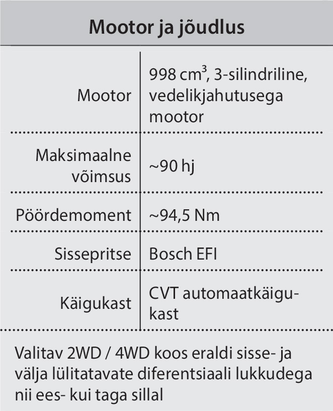 Kolmesilindriline konfiguratsioon on siin võtmetähtsusega. Erinevalt traditsioonilistest V-twin-mootoritest pakub see sujuvamat tööd, vähem vibratsiooni ja lineaarsemat kiirendust. Tulemuseks on masin, mis sobib võrdselt hästi nii aeglaseks tööks kui ka kiireks maastikusõiduks.